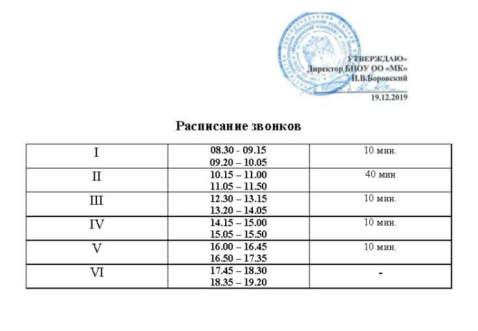 Расписание звонков
