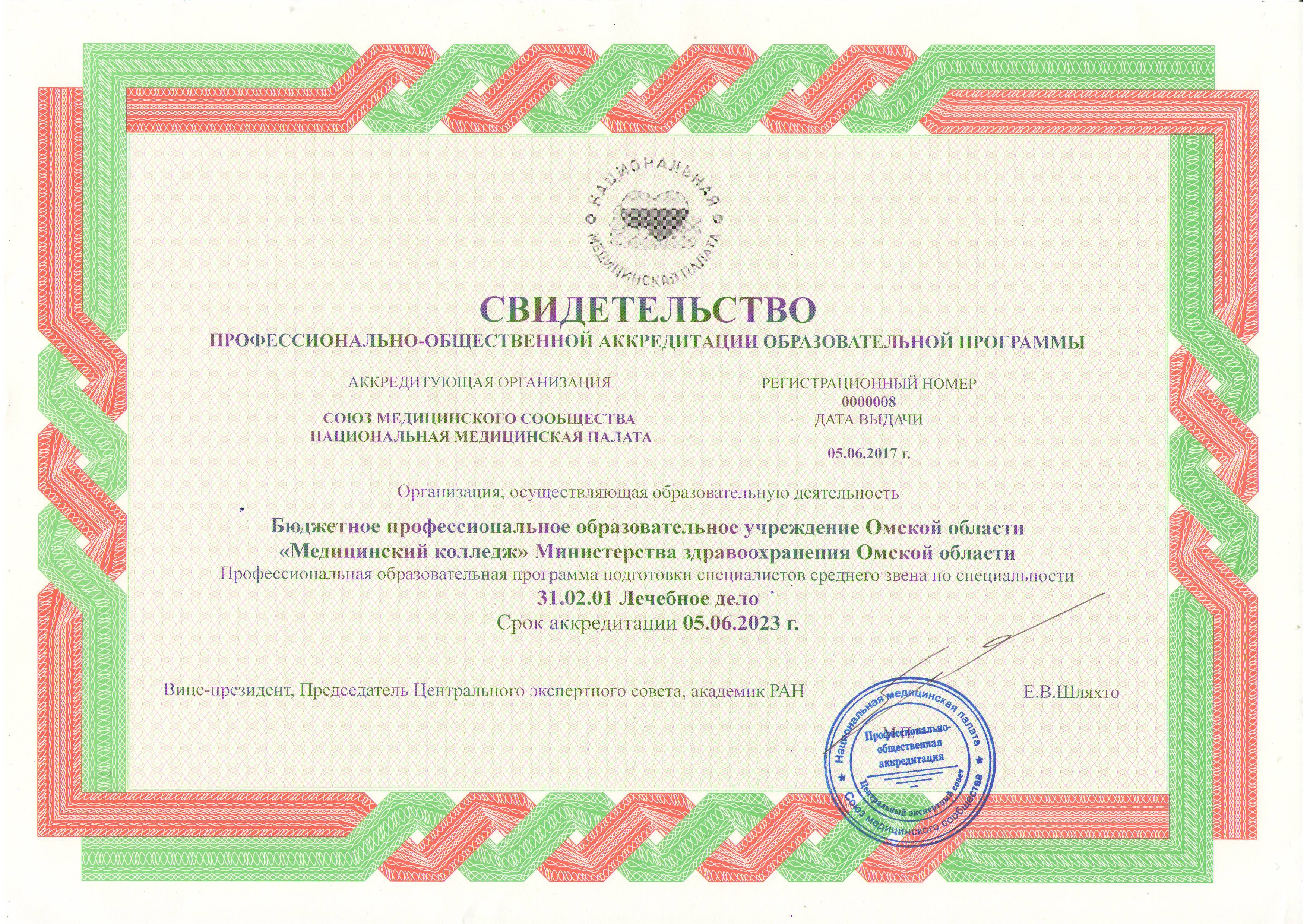Свидетельство профессионально-общественной аккредитации образовательной программы