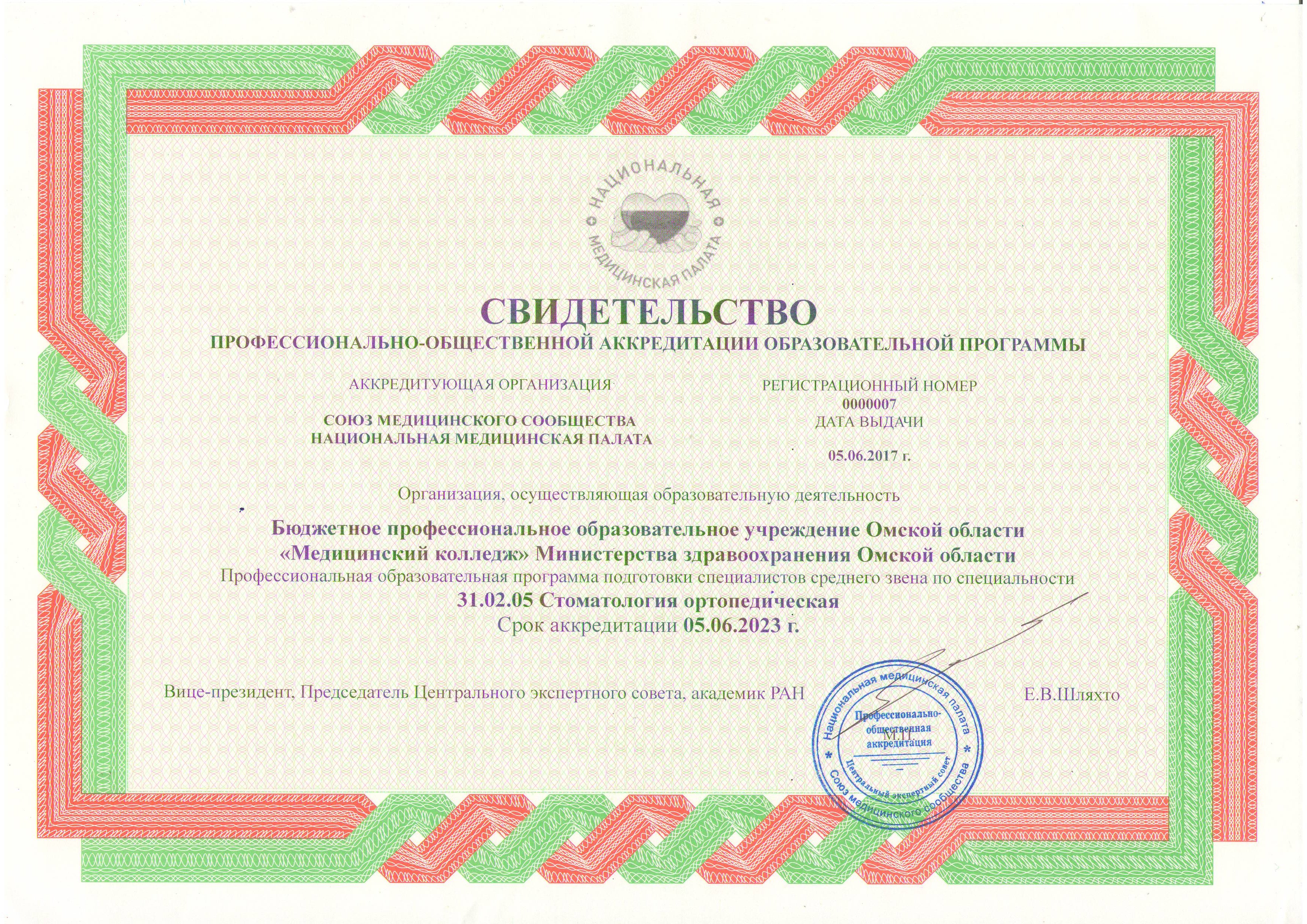 Программа подготовки специалистов среднего звена: специальность 31.02.05 Стоматология ортопедическая