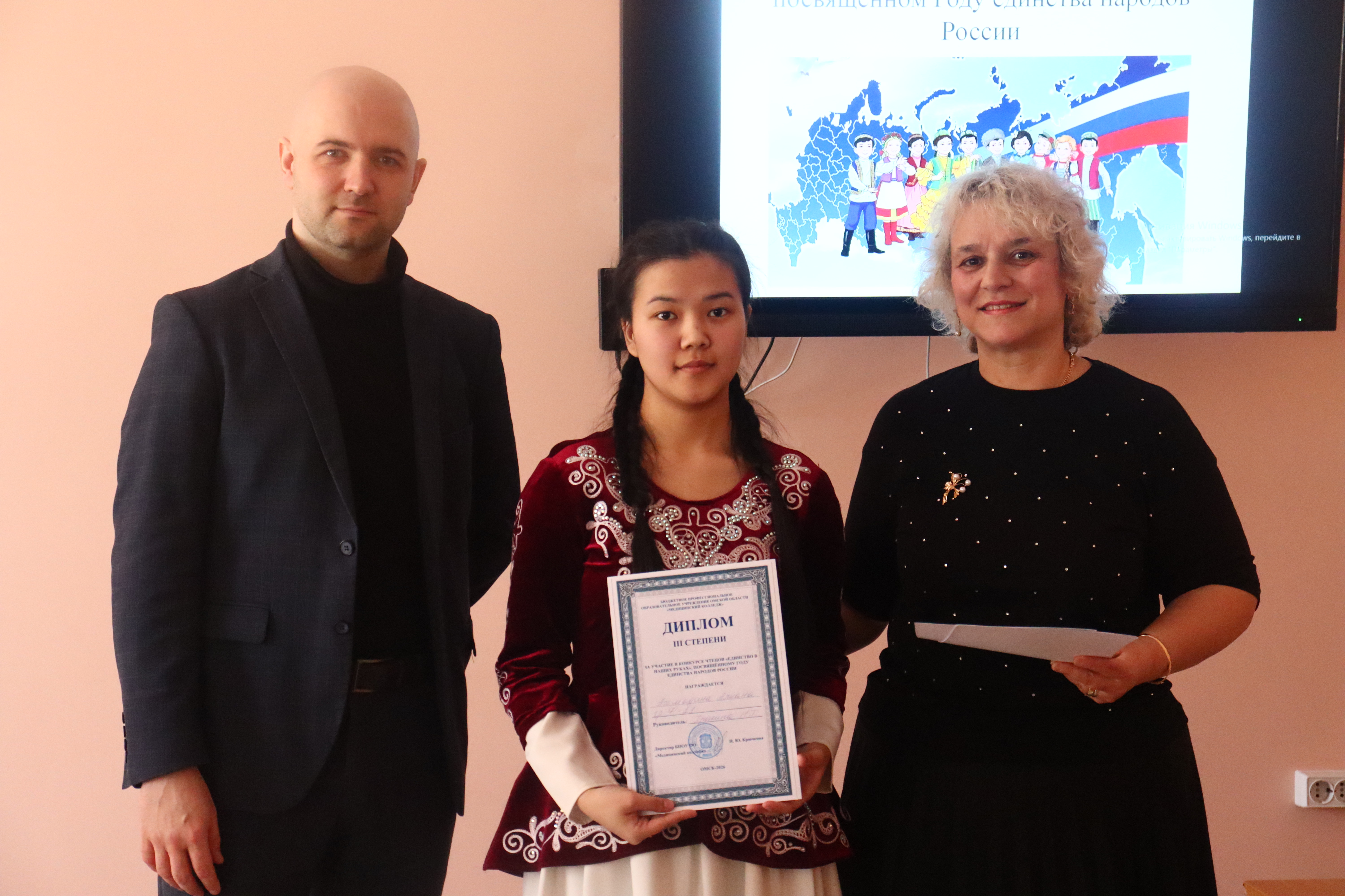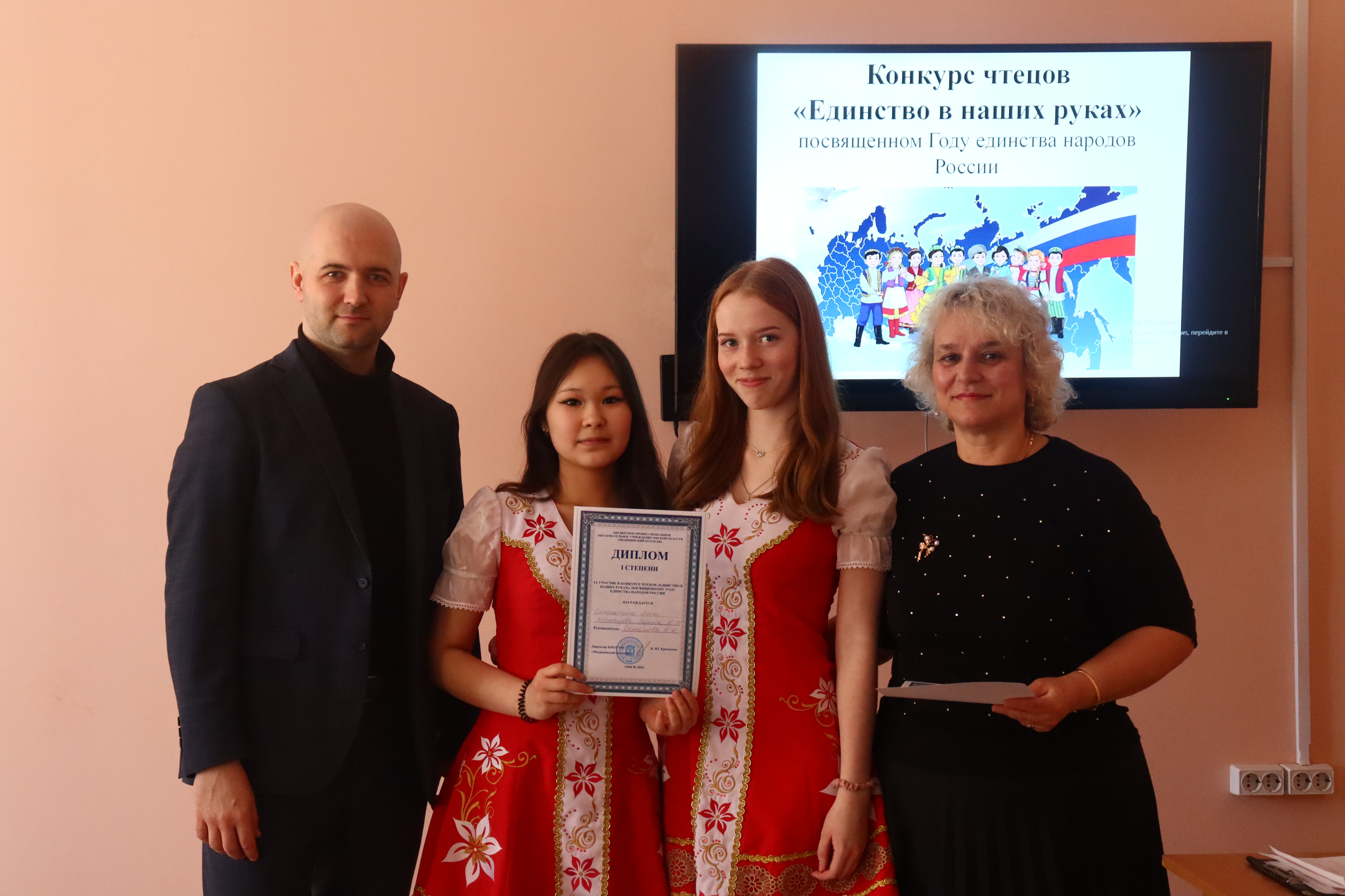В рамках Года единства народов России и в преддверии Дня воссоединения Крыма с Россией, студенты Медицинского колледжа приняли участие в конкурсе чтецов «Единство в наших руках». Мероприятие, организованное ЦК общепрофессиональных дисциплин, стало ярким проявлением любви к Родине, малой родине и стремления к сохранению культурного многообразия.