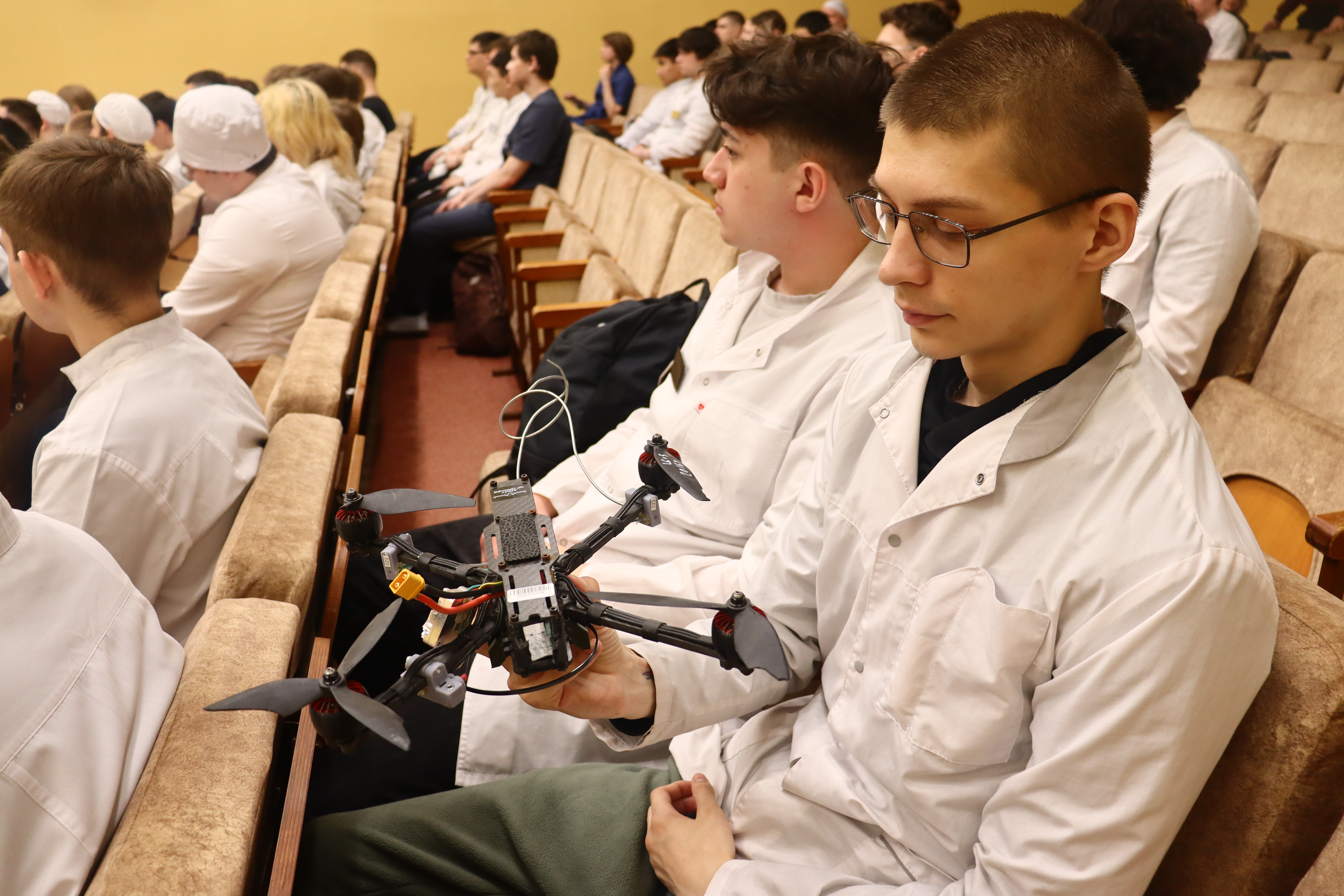 В ходе встречи студентам была продемонстрирована специализированная техника, которая помогала бойцам в выполнении поставленных задач. Особое внимание было уделено различным модификациям дронов, играющих все более важную роль в современных условиях.
