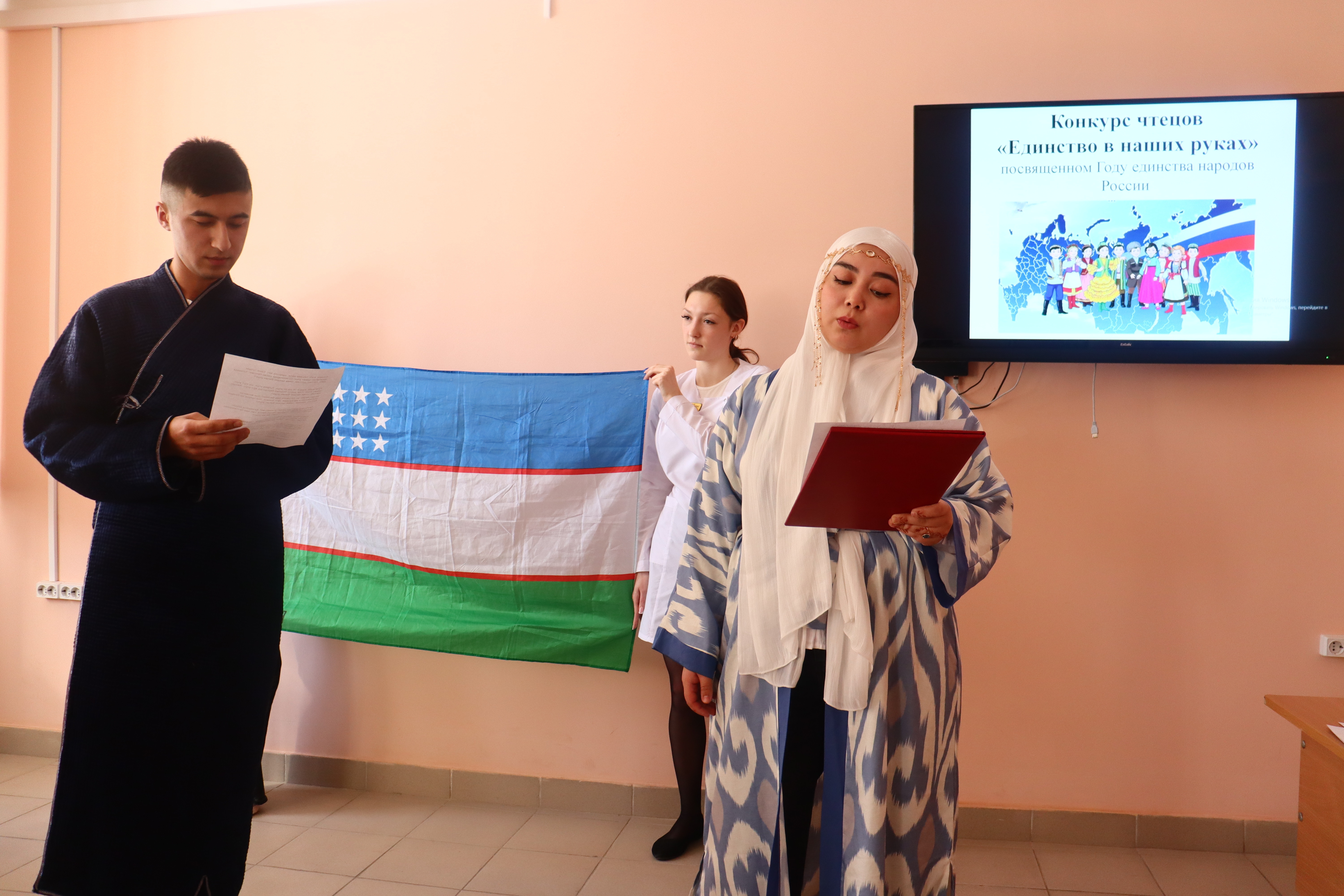 В рамках Года единства народов России и в преддверии Дня воссоединения Крыма с Россией, студенты Медицинского колледжа приняли участие в конкурсе чтецов «Единство в наших руках». Мероприятие, организованное ЦК общепрофессиональных дисциплин, стало ярким проявлением любви к Родине, малой родине и стремления к сохранению культурного многообразия.